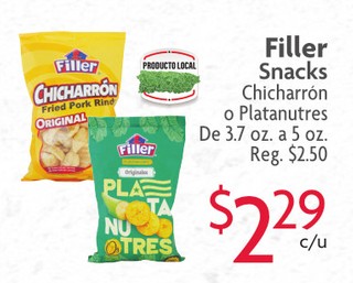Filler Snacks Chicharrón o Platanutres De 3.7 oz. a 5 oz.