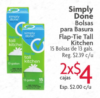 Simply Done Bolsas para Basura Flap-Tie Tall Kitchen 15 Bolsas