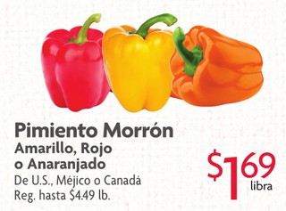 Pimiento Morrón Amarillo, Rojo o Anaranjado De U.S. Mejico o Canada