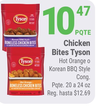 Chicken Bites Tyson Hot Orange o Korean BBQ Style Cong. Pqte. 20 a 24 oz