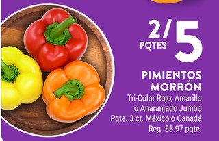 PIMIENTOS MORRÓN Tri-Color Rojo, Amarillo o Anaranjado Jumbo Pqte. 3 ct. México o Canadá