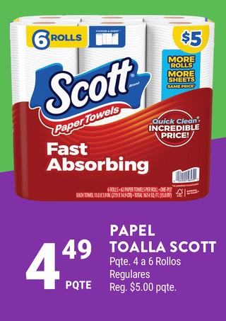 PAPEL TOALLA SCOTT Pqte. 4 a 6 Rollos Regulares
