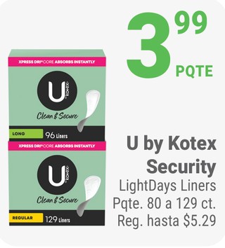 U by Kotex Security LightDays Liners Pqte. 80 a 129 ct.