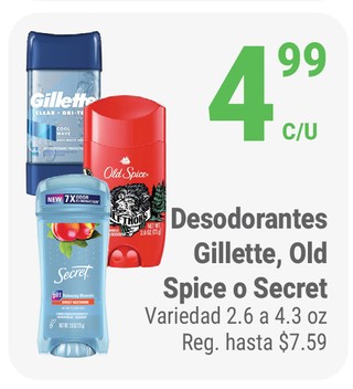Desodorantes Gillette, Old Spice o Secret Variedad 2.6 a 4.3 oz