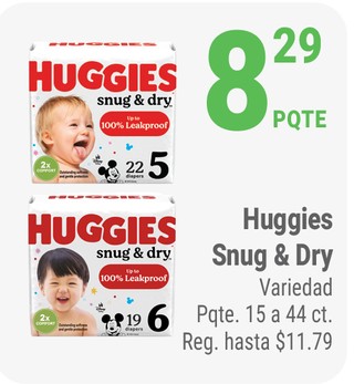 Huggies Snug & Dry Variedad Pqte. 15 a 44 ct.
