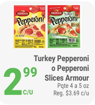 Turkey Pepperoni o Pepperoni Slices Armour Pqte. 4 a 5 oz
