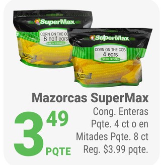 Mazorcas SuperMax Cong. Enteras Pqte. 4 ct o en Mitades Pqte. 8 ct.