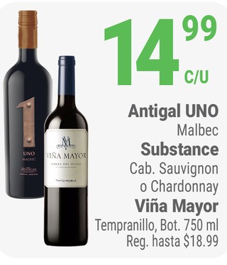 Antigal UNO Malbec Substance Cab. Sauvignon o Chardonnay Viña Mayor Tempranillo, Bot. 750 ml