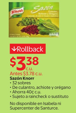 Sazón Knorr 32 sobres De culantro, achiote y oregano