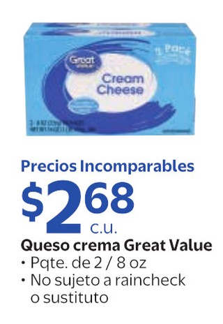 Quesos crema Great Value Pqte. de 2 / 8 oz