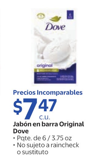 Jabon en barra original dove -pqte. de 6 / 3.75 oz - no sujeto a raincheck o sustituto