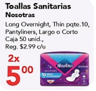 toallas sanitarias long overnight thin pqte, pantyliners, corto caja unid, reg. $c/u