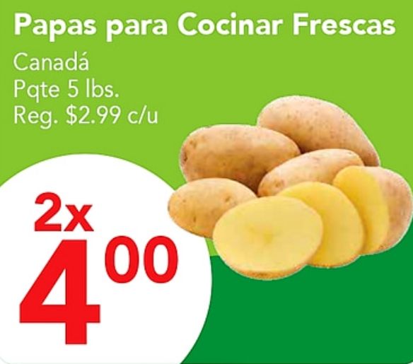 papas cocinar frescas canadá pqte reg. $c/u