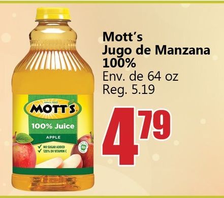 motts juice apple sugar added vitamin mott's jugo manzana reg.