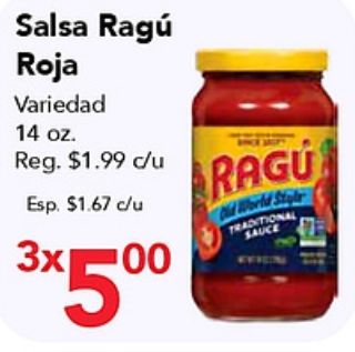salsa ragĂș roja variedad reg. $c/u esp. xragu traditional sauce