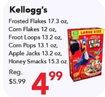 kellogg's frosted flakes corn froot loops large size pops froit apple jacks honey smacks reg.