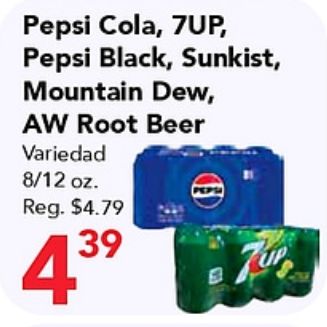 pepsi cola black, sunkist, mountain dew, root beer variedad reg.