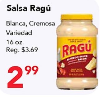 salsa ragĂș blanca cremosa variedad reg. $ragu cedo save bacon