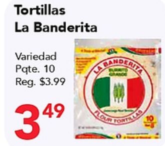 tortillas banderita variedad pate reg. $panderita flour fontilla