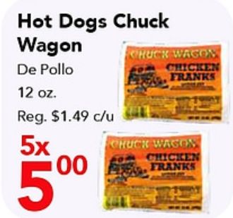 dogs chuck wagon pollo reg. $c/u chicken franks