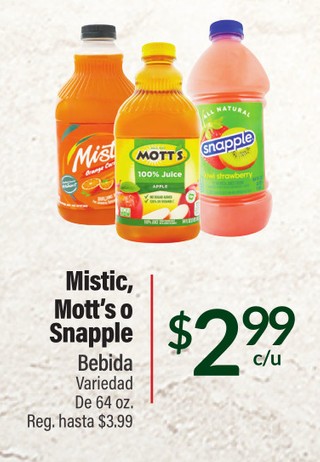 Mistic, Mott's o Snapple Bebida Variedad De 64 oz.
