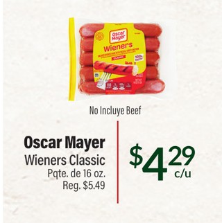 Oscar mayer wieners classic pqte. de 16 oz.