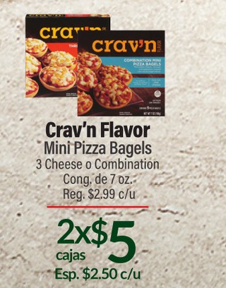 Flavor Crav'n Mini Pizza Bagels 3 Cheese o Combination Cong. de 7 oz.