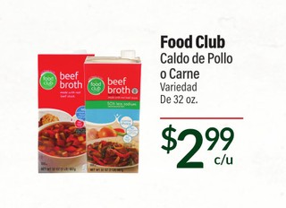 Food Club Caldo de Pollo o Carne Variedad De 32 oz.