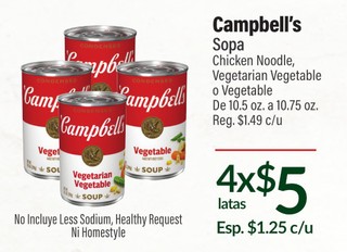 Campbell's Sopa Chicken Noodle, Vegetarian Vegetable o Vegetable De 10.5 oz. a 10.75 oz.