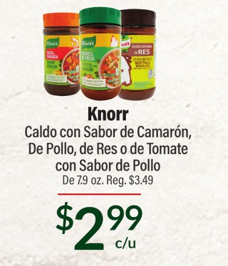 Knorr caldo con sabor de camaron, de pollo, de res o de tomate con sabor de pollo de 7.9 oz.