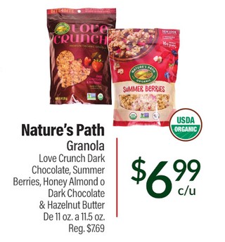 Nature's Path Granola Love Crunch Dark Chocolate, Summer Berries, Honey Almond o Dark Chocolate & Hazelnut Butter De 11 oz. a 11.5 oz.
