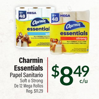 Charmin Essentials Papel Sanitario Soft o Strong De 12 Mega Rollos