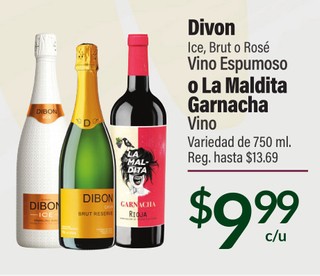 Divon Ice, Brut o Rose Vino Espumoso o La Mladita Garnacha Vino Variedad de 750 ml.