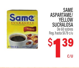 SAME ASPARTAME/ YELLOW SUCRALOSA De 60 sobre