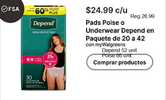 more plus depend fresh protection $c/u pads poise underwear paquete mywalgreens unit comprar productos