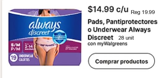 always discreet $c/u pads pantiprotectores underwear unit mywalgreens culottes comprar productos