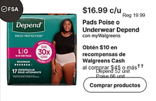 ofsa depend fresh protection maximum underwear sous vetements $c/u pads poise mywalgreens obtén recompensas walgreens cash comprar más++ unit productos
