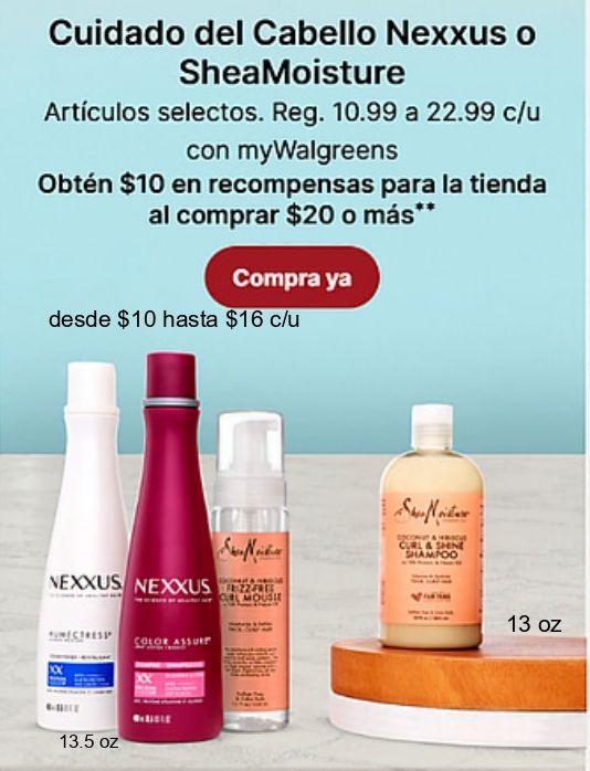 cuidado cabello nexxus sheamoisture artículos selectos reg. mywalgreens obtén recompensas tienda comprar más** compra $hasta $c/u mouse color assure sweiter epcot curl&shene shampoo