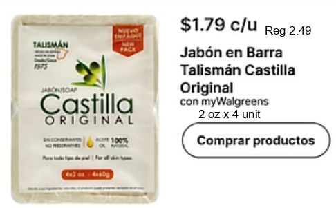 talisman jabon/soap castilla original conerants $c/u jabón barra talismán mywalgreens unit comprar productos
