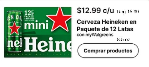 mini heine $c/u cerveza heineken paquete latas mywalgreens comprar productos
