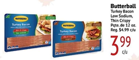 duttersall turkey bacon butterball sodium thin crispy pqte reg. $c/u