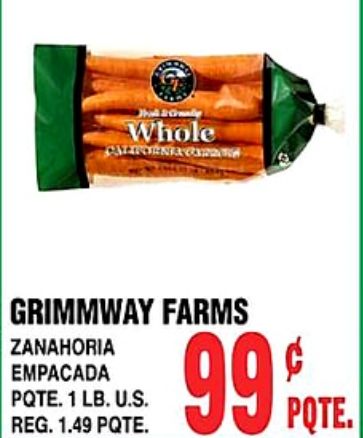 whole grimmway farms zanahoria empacada pqte u.s. reg. pqte. pote