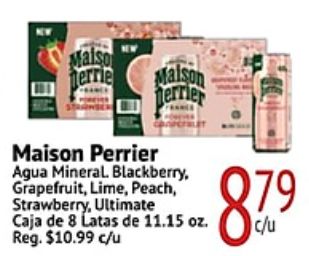 maiso terrie maison terrier perrier agua mineral blackberry grapefruit, lime, peach," strawberry, ultimate caja latas reg. $c/u