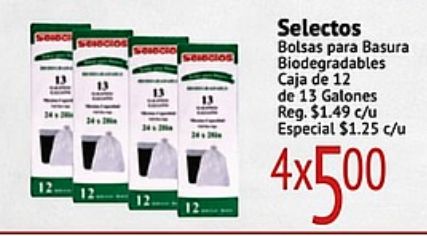 selectos bolsas basura biodegradables caja alones reg. $c/u especial