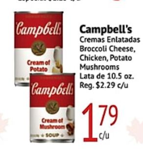 campbell campbell's cremas enlatadas broccoli cheese chicken, potato cream mushrooms lata reg. $c/u mushroom soup