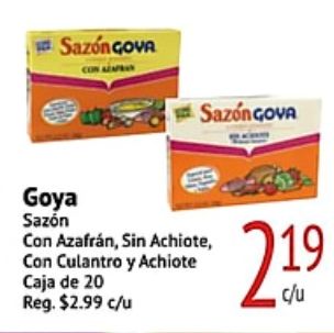 sazón gova goya azafrán achiote, culantro achiote caja $c/u