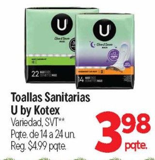 Toallas Sanitarias U by Kotex Variedad, SVT** Pqte. de 14 a 24 un