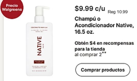 precio walgreens native $c/u champú acondicionador obtén recompensas tienda comprar productos
