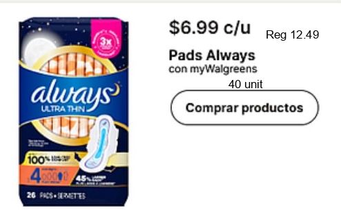 always ultra thin $c/u pads mywalgreens unit comprar productos pacs sermettes