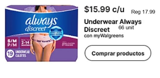 always discreet $c/u underwear unit mywalgreens culottes comprar productos
